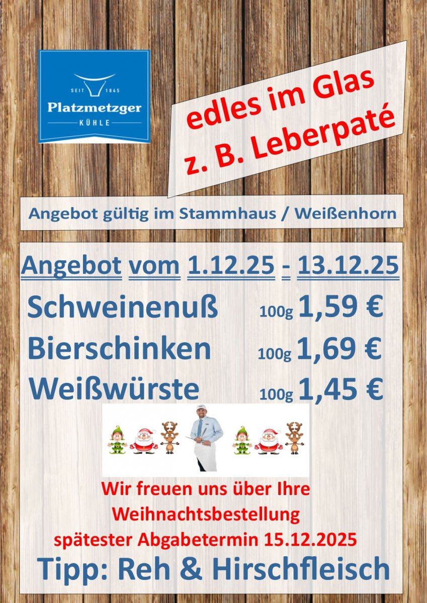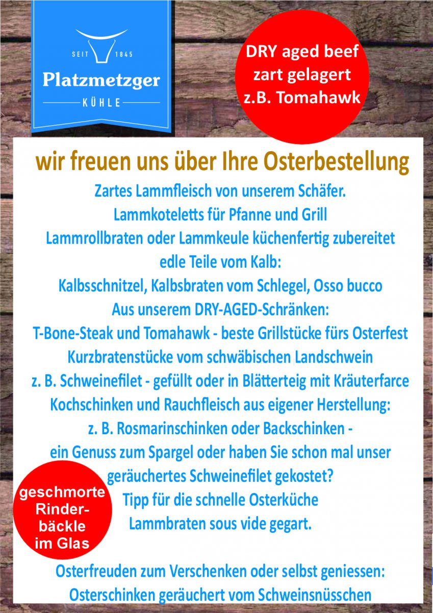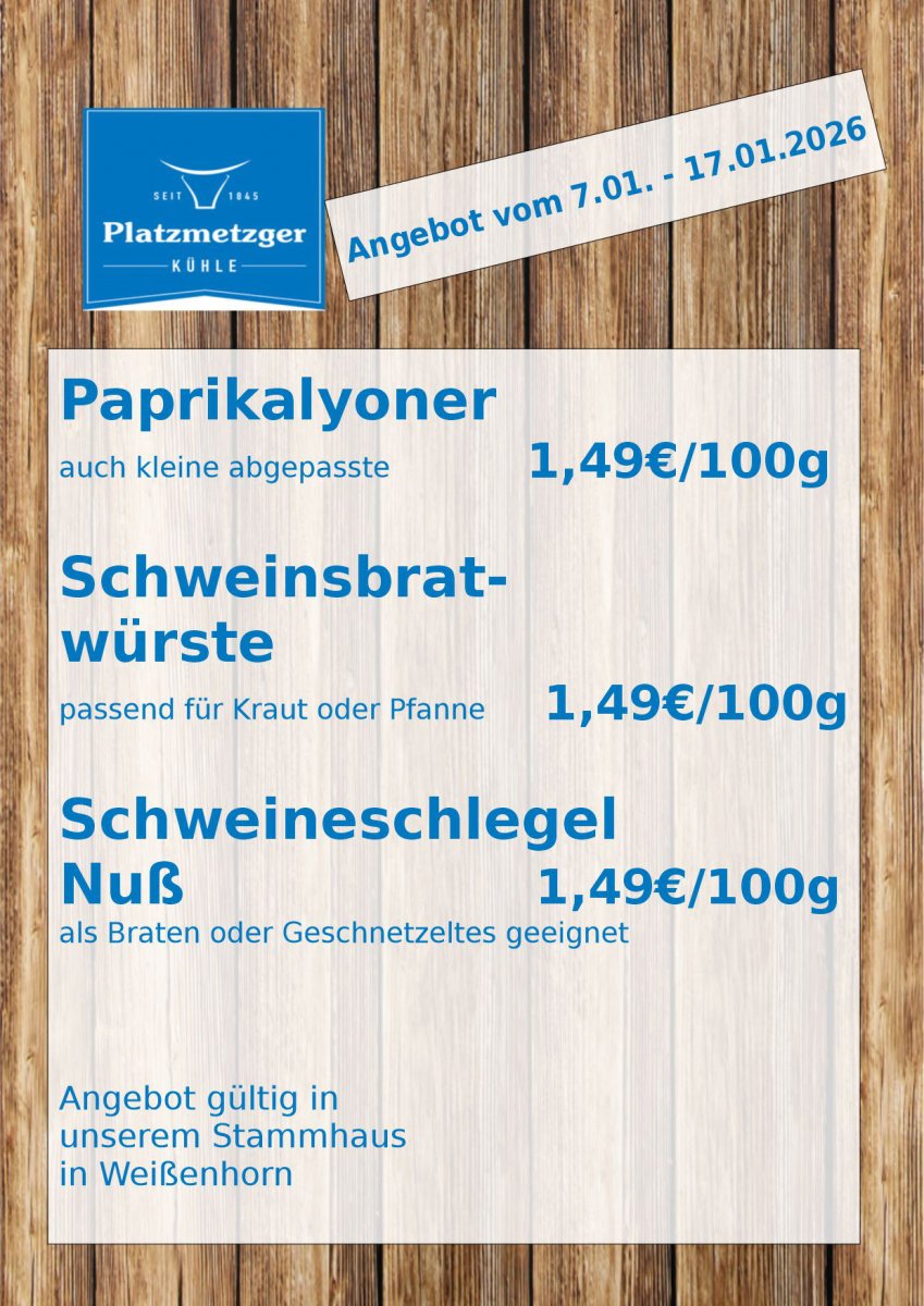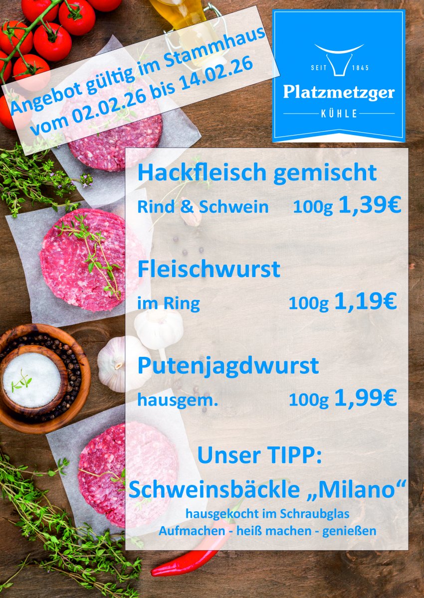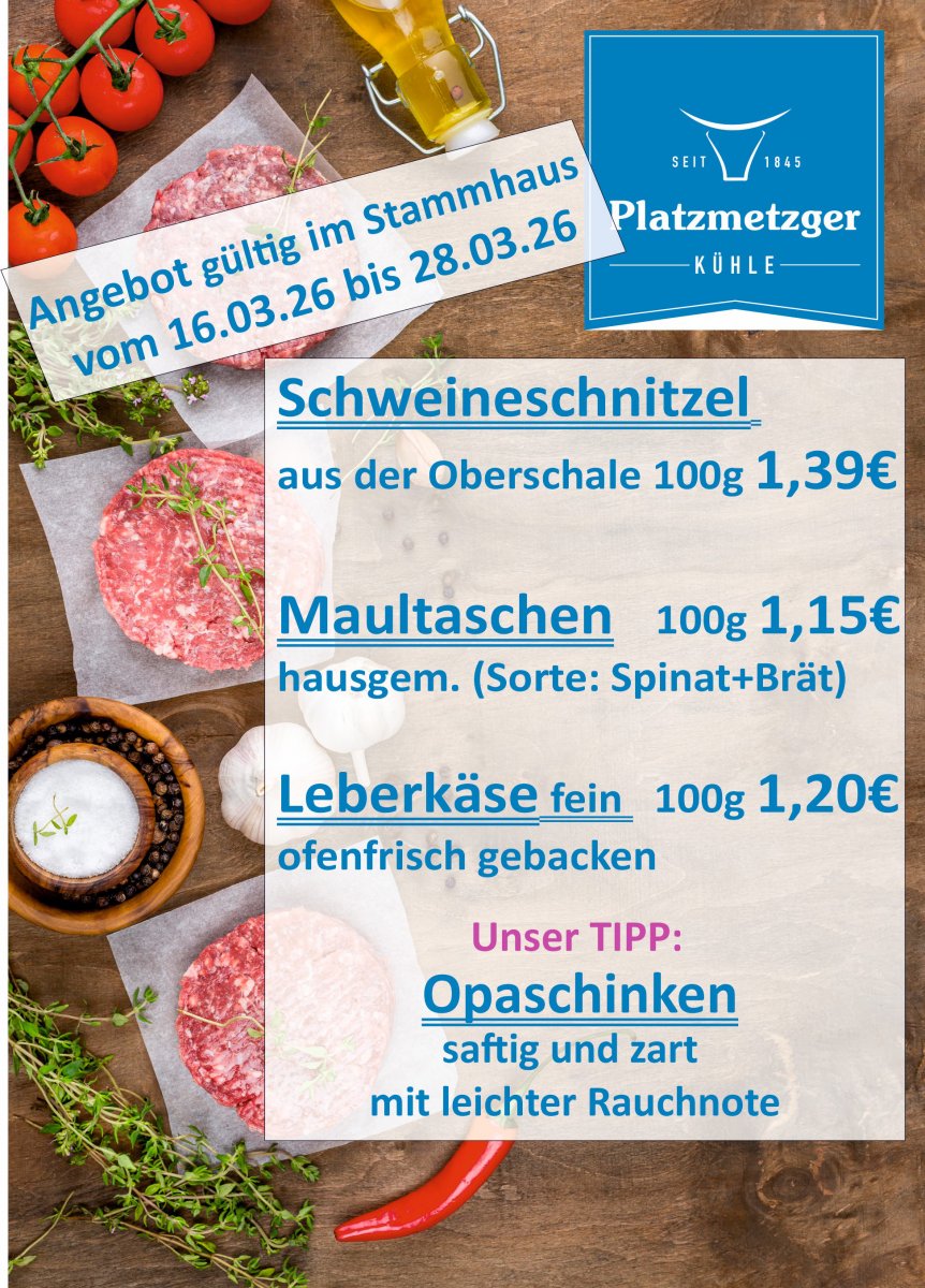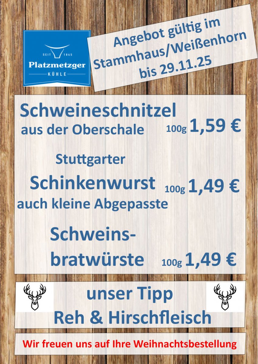 Platzmetzgerei Kühle, Gunther Kühle, Hauptplatz 2, 89264 Weißenhorn, info@platzmetzger.de